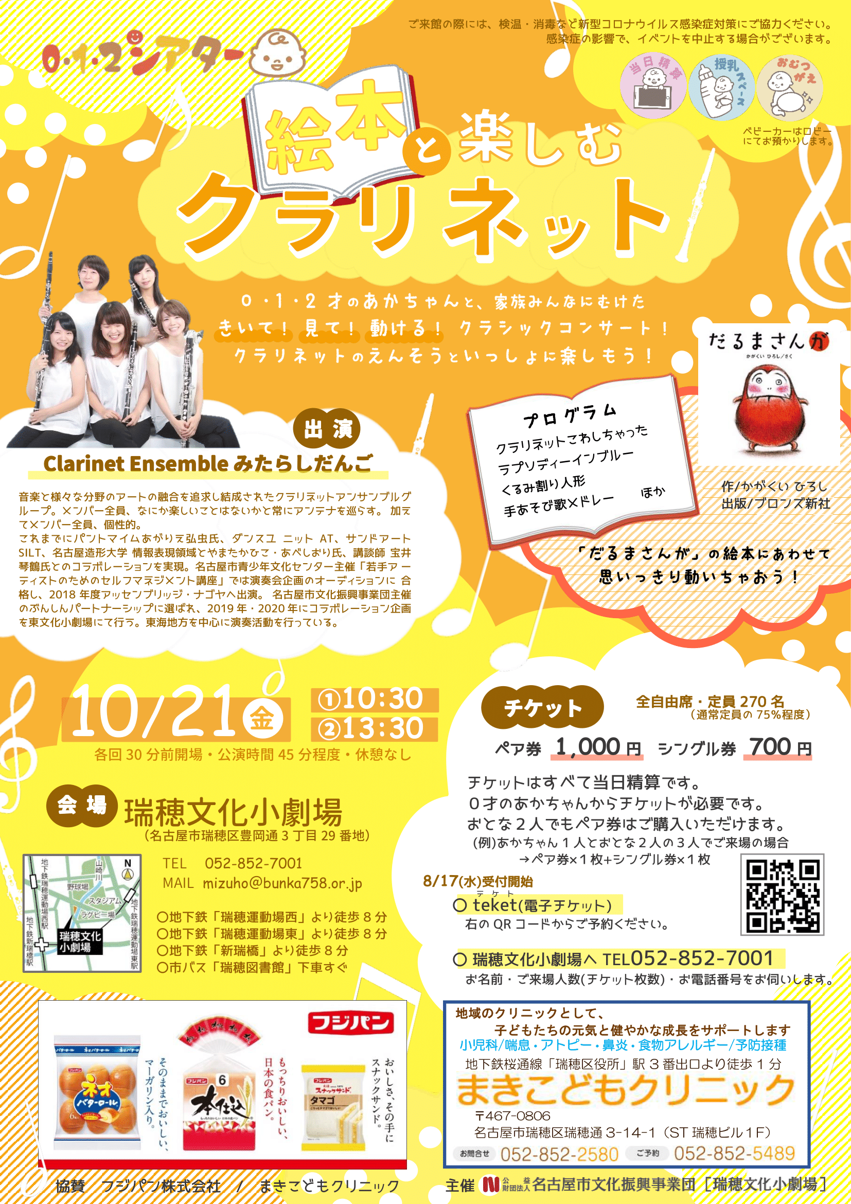 2022年10月21日(金)、瑞穂文化小劇場にて『0・1・2 シアター「絵本と楽しむクラリネット」』が開催されます!!
