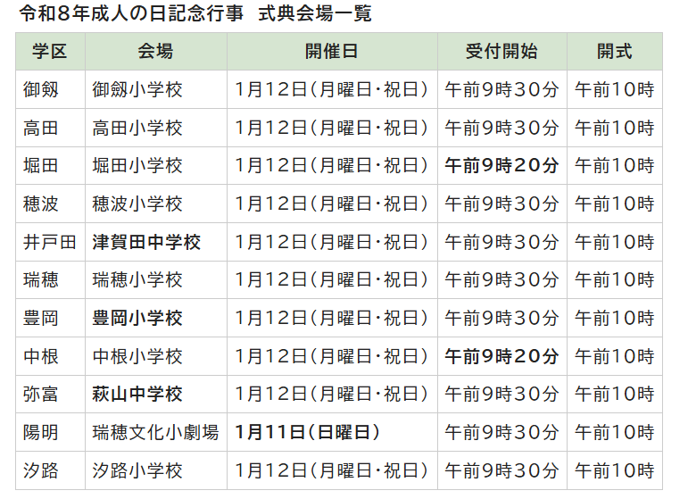 令和8年(2026年)瑞穂区の成人式は1月12日(月・祝)に各学区で開催されることが決定しています!!