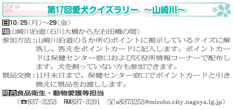 毎年、この時期に開催されている『愛犬クイズラリー 山崎川』