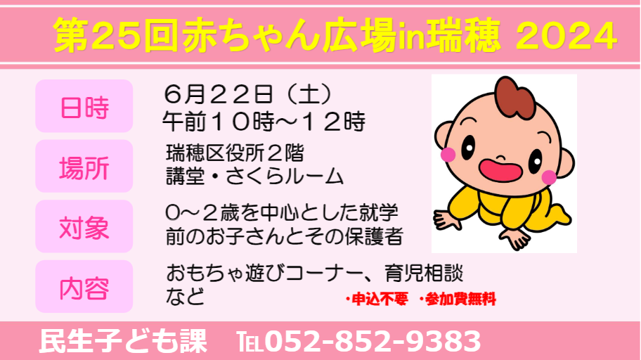 2024年6月22日(土)瑞穂区役所で『第25回 赤ちゃん広場 in 瑞穂2024』で開催されます!
