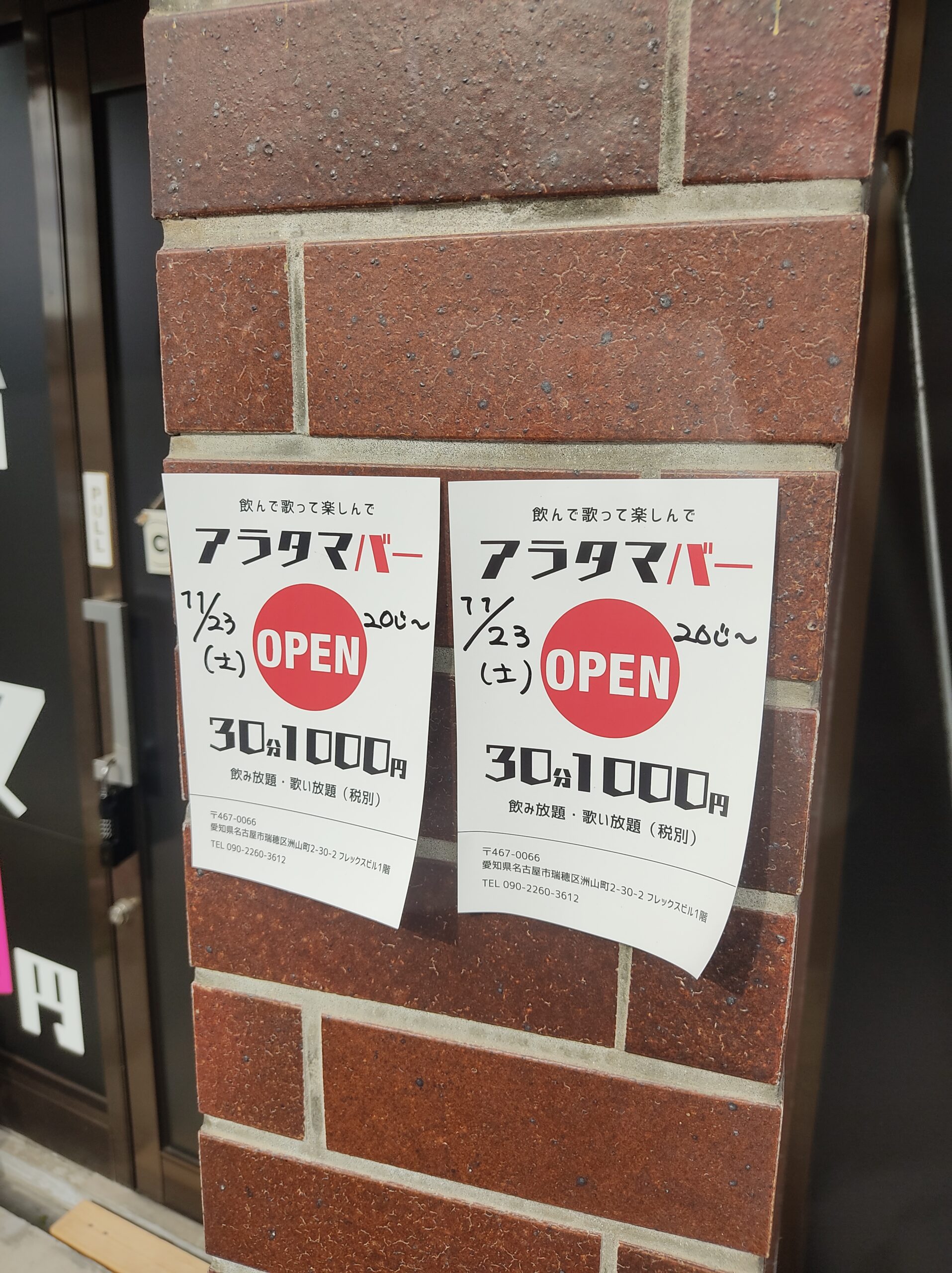 2024年11月23日(土)、瑞穂区・新瑞橋に『アラタマバー』がオープンしたみたいです!!