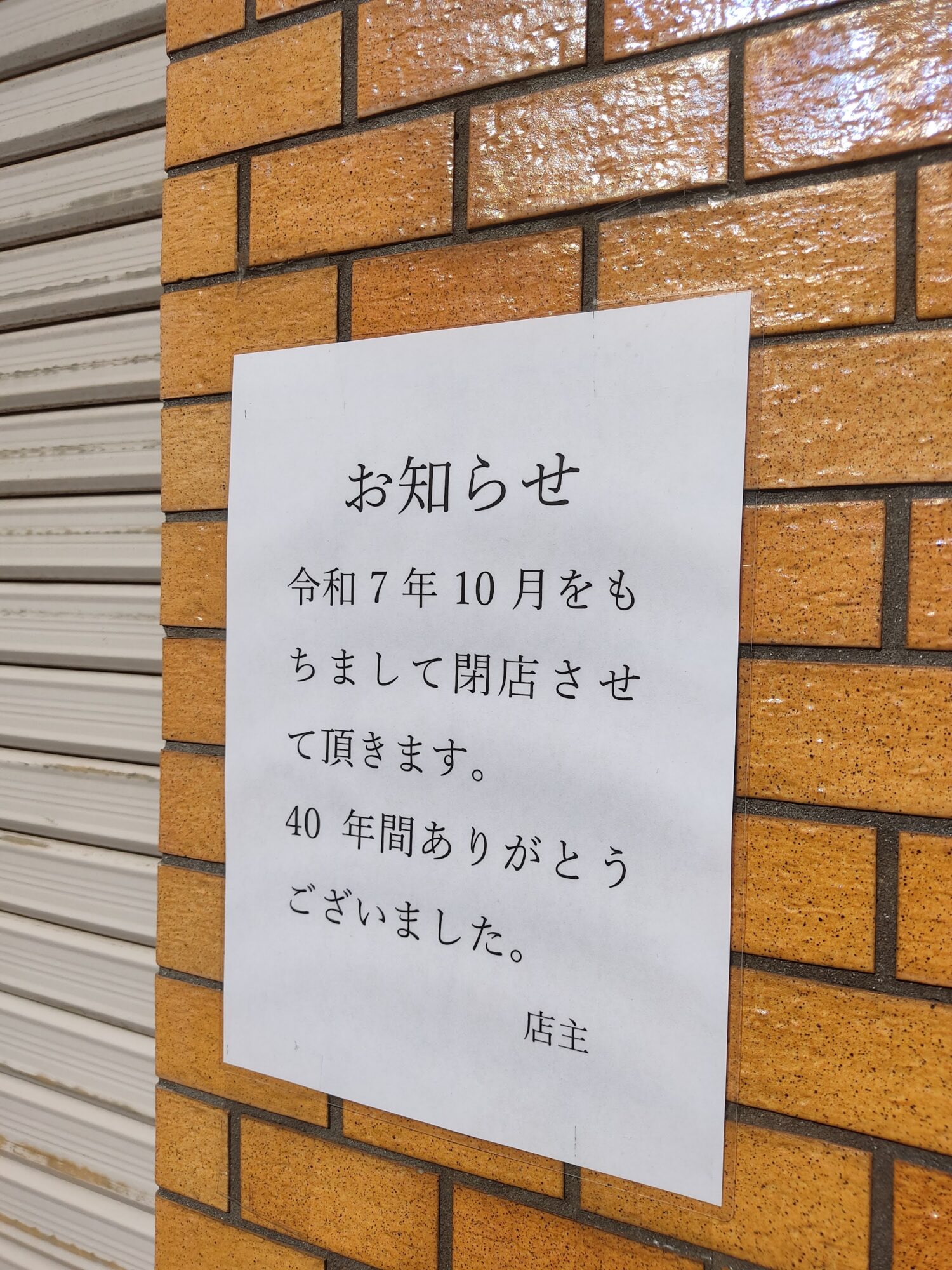 開店・閉店新瑞橋『とんかつ 井筒』が10月いっぱいで閉店していました…【瑞穂区閉店】 mizuhon 2025年11月7日 2025年10月の営業をもって、瑞穂区・洲山町にある『とんかつ 井筒』が閉店していました… 場所は新瑞橋駅の北側。瑞穂通沿いから、東側へ一本入ったところ。 ↓詳しい場所はこちら↓ お店の前には閉店を知らせる貼り紙が… 40年もの長きに渡る営業。本当にお疲れ様でした。瑞穂区の老舗店はここ数年で一気になくなってしまいました。残念ですが、これまでの営業ありがとうございました。 【とんかつ 井筒】 住所:名古屋市瑞穂区洲山町1-15*この記事情報は2025年11月7日現在のものです。 新瑞橋 閉店