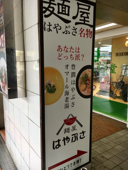 『麺屋はやぶさ』の看板があり。