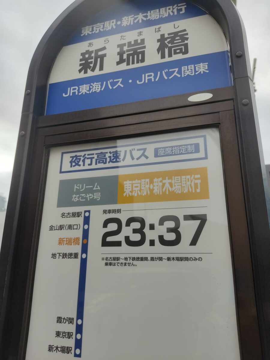 瑞穂区民も意外と知らない?新瑞橋⇔東京の夜行バス。