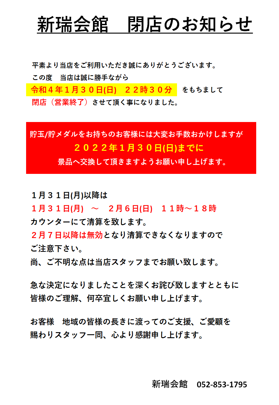 パチンコ屋『新瑞会館』が1/30(日)で閉店。新瑞橋交差点すぐのお店。【瑞穂区閉店】