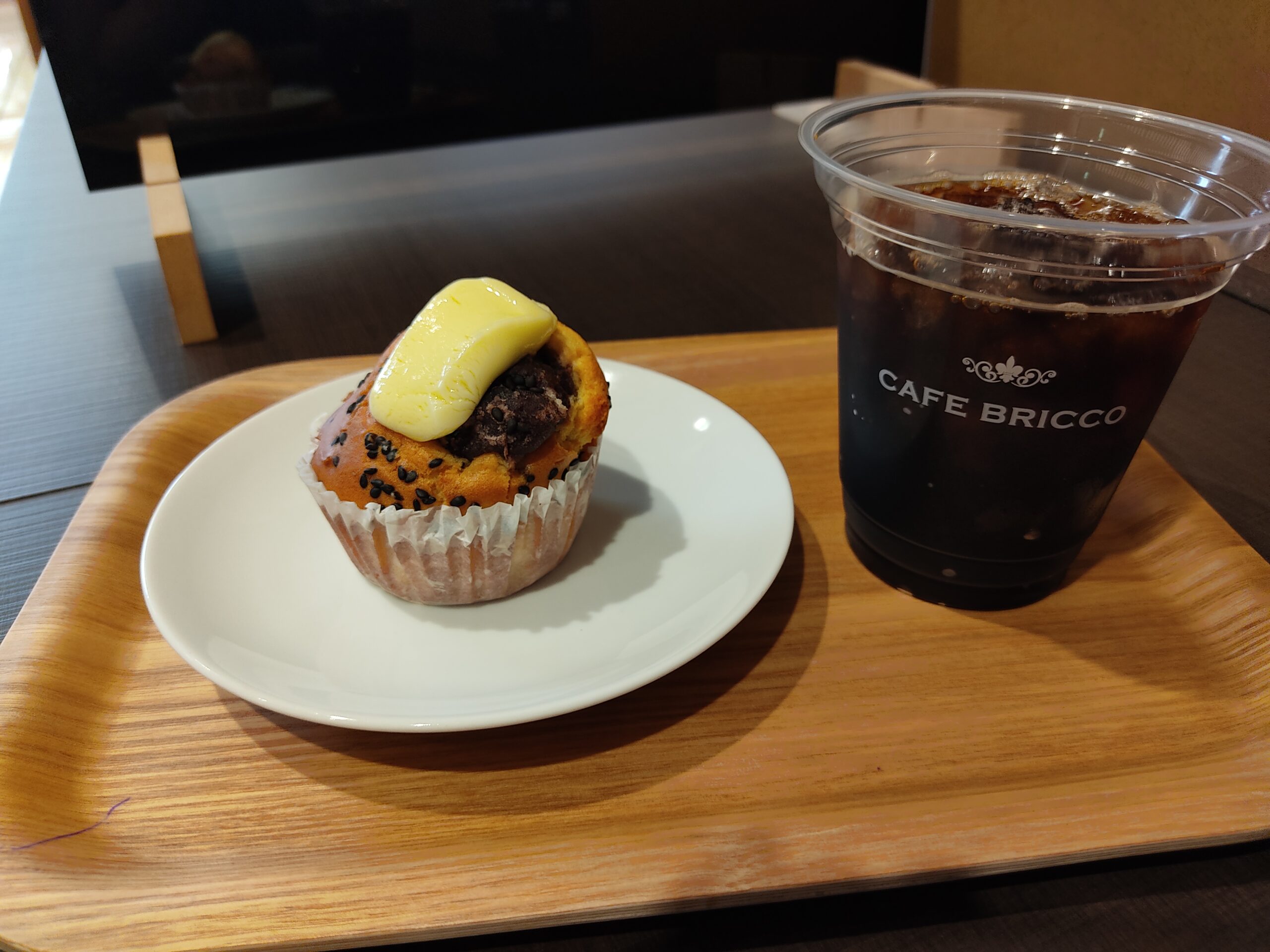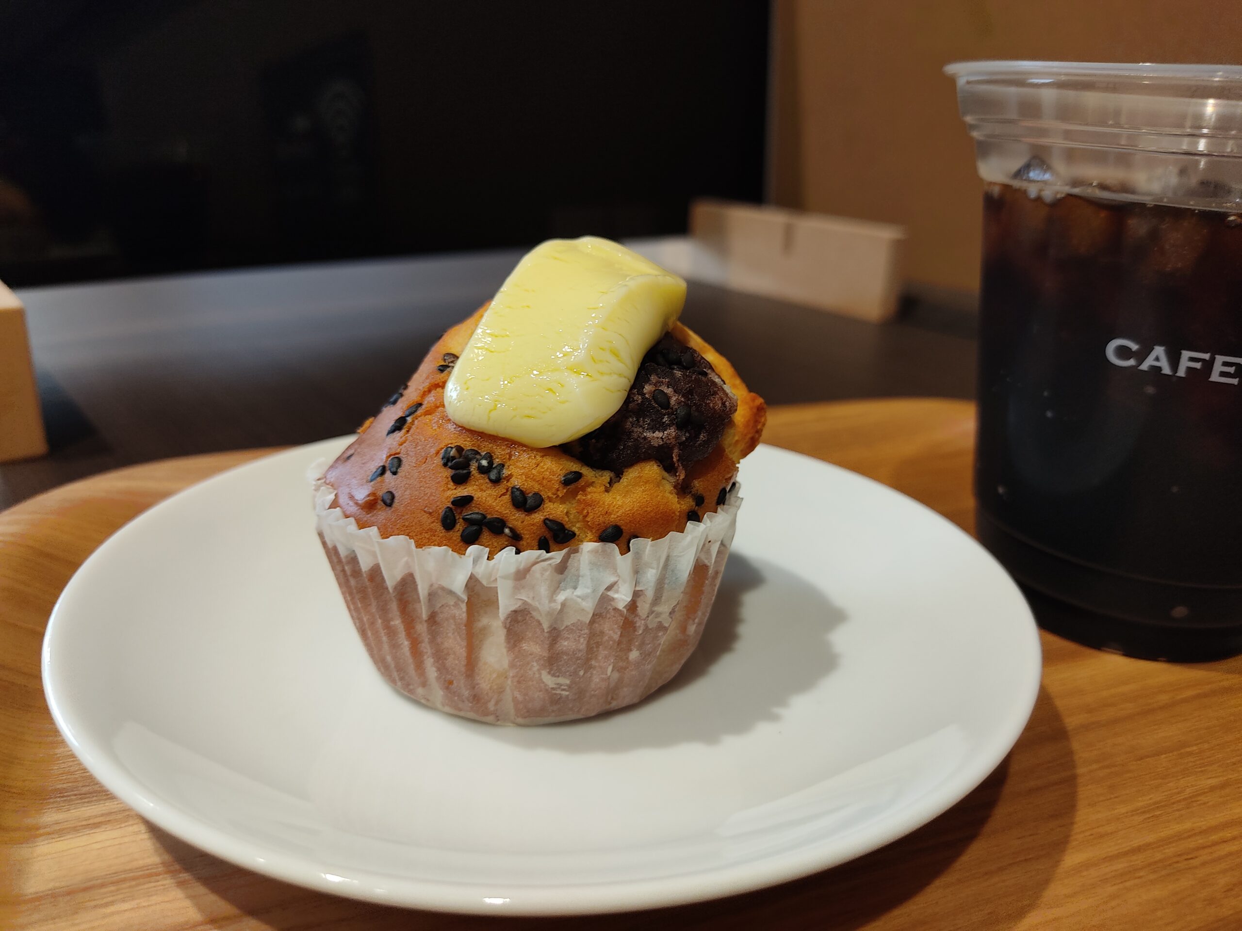 この日に注文したのは、おぐらバターのマフィン&アイスコーヒーのセット。