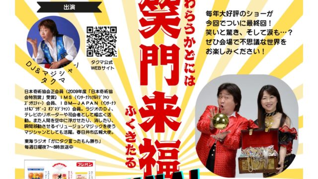 5/31(土)『マジックバラエティショー 笑門来福FINAL』が瑞穂文化小劇場で開催!【瑞穂区イベント】