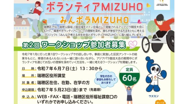 6/7(土)『みんなで考える共生社会とボランティアMIZUHO』」第2回ワークショップが開催されるみたい!【瑞穂区イベント】