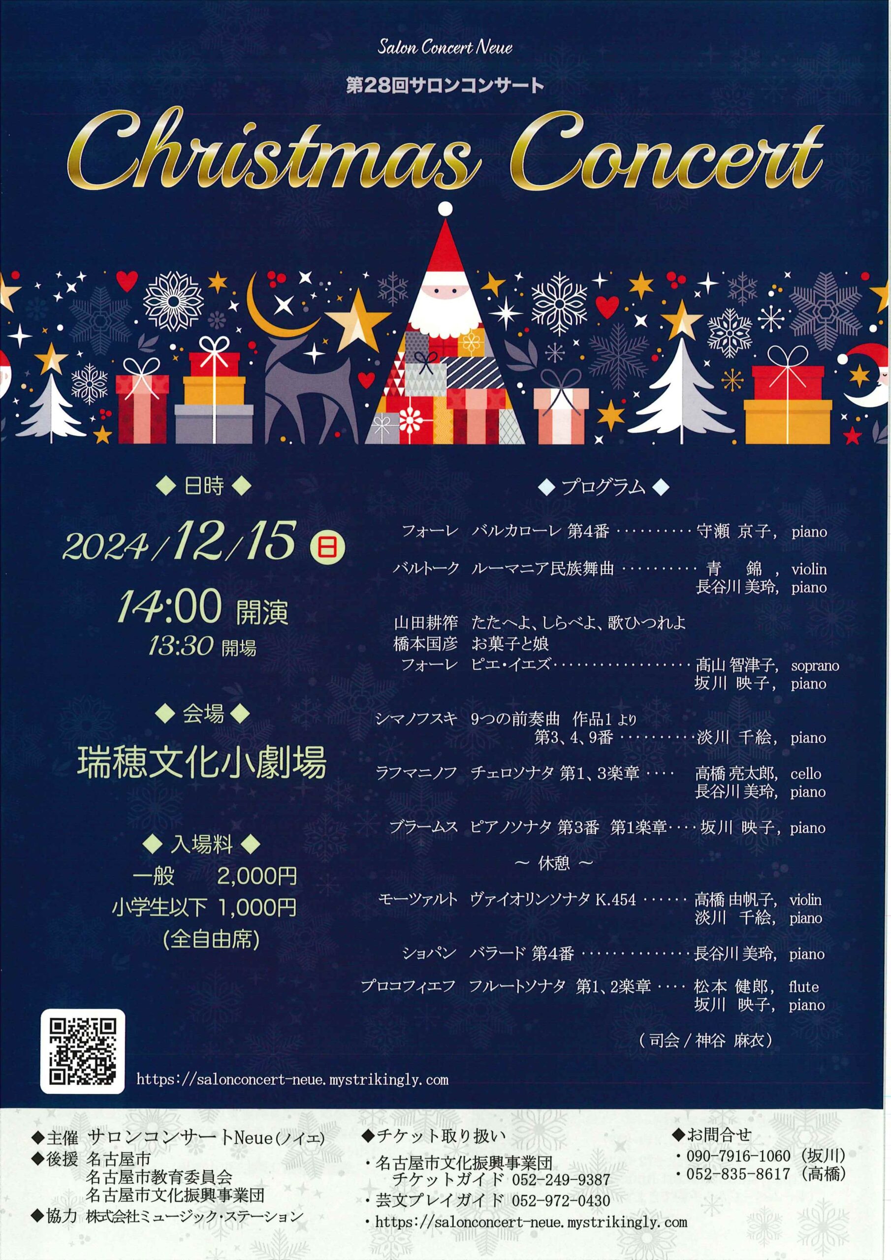 2024年12月15日(日)、瑞穂文化小劇場で『第28回サロンコンサート クリスマスコンサート』が開催されます!