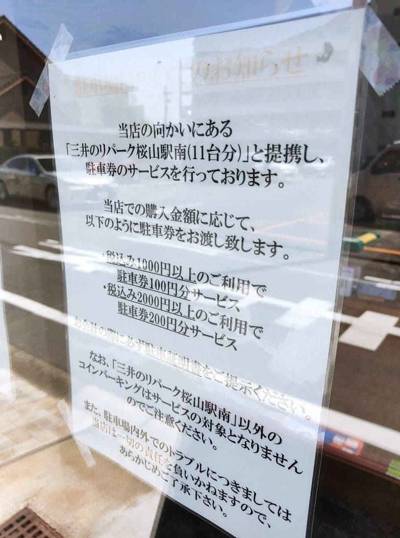 駐車場:駐車場無し(購入金額に応じて「三井のリパーク桜山駅南」