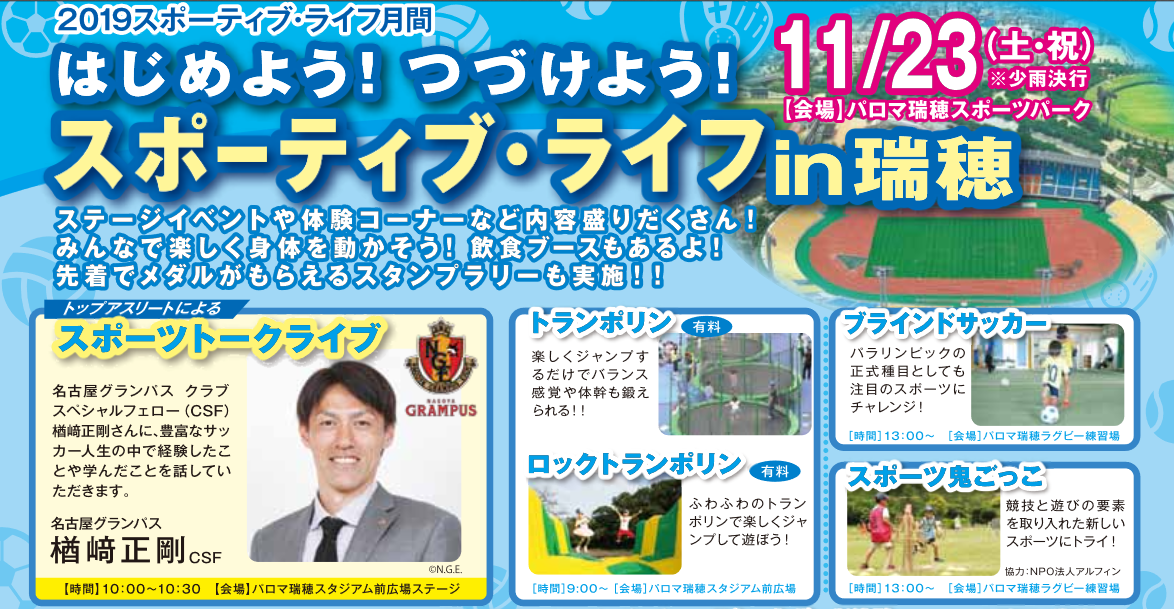 【イベント】楢さんもやってくる!!2019.11.23(土)に『スポーティブ・ライフin瑞穂』がパロマ瑞穂スポーツパークであるよ♪