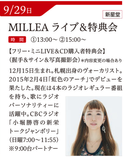 歌手の『MILLEA』さんがイオン八事でイベントを開催されます♪
