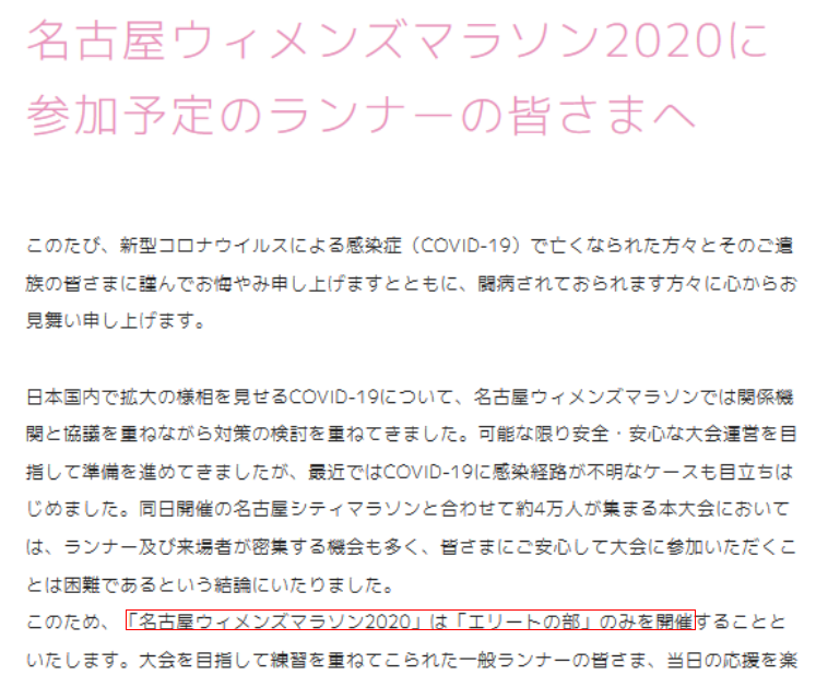 【名古屋ウィメンズマラソン2020 ホームページ】