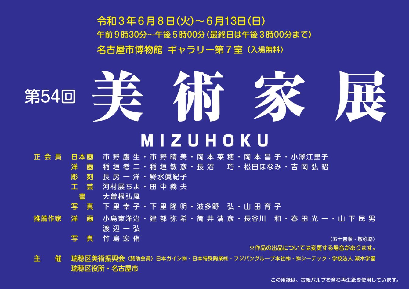 2021年6月8日(火)から13日(日)まで、名古屋市博物館で『第54回 瑞穂区美術家展』が開催されます。