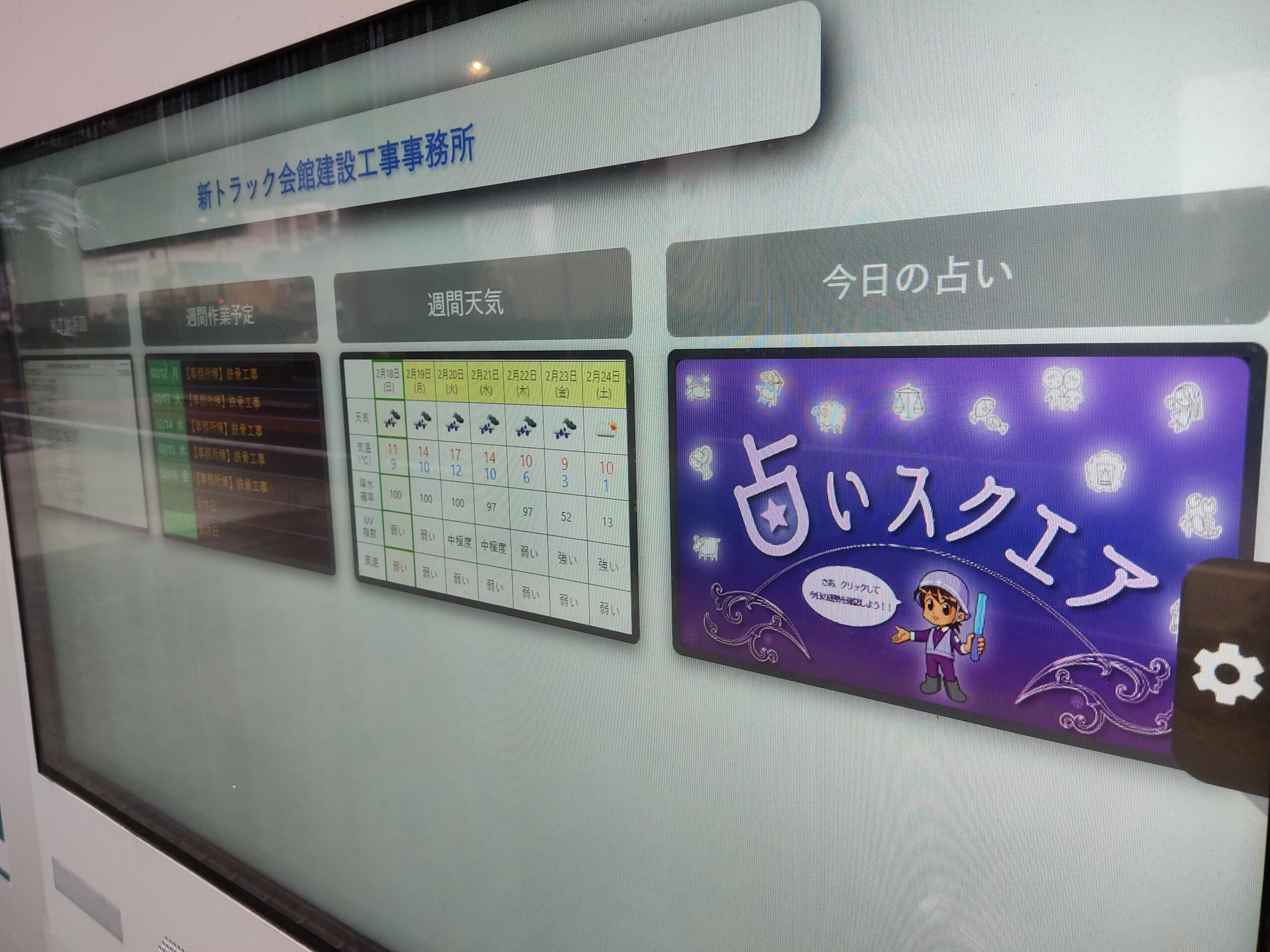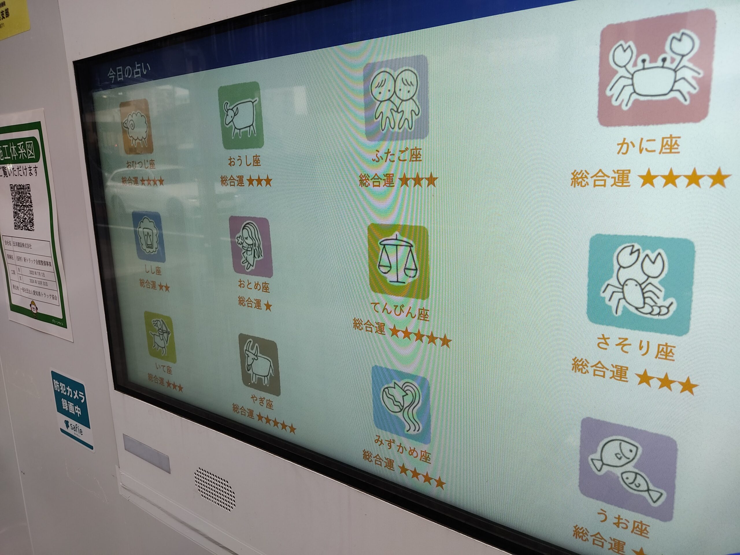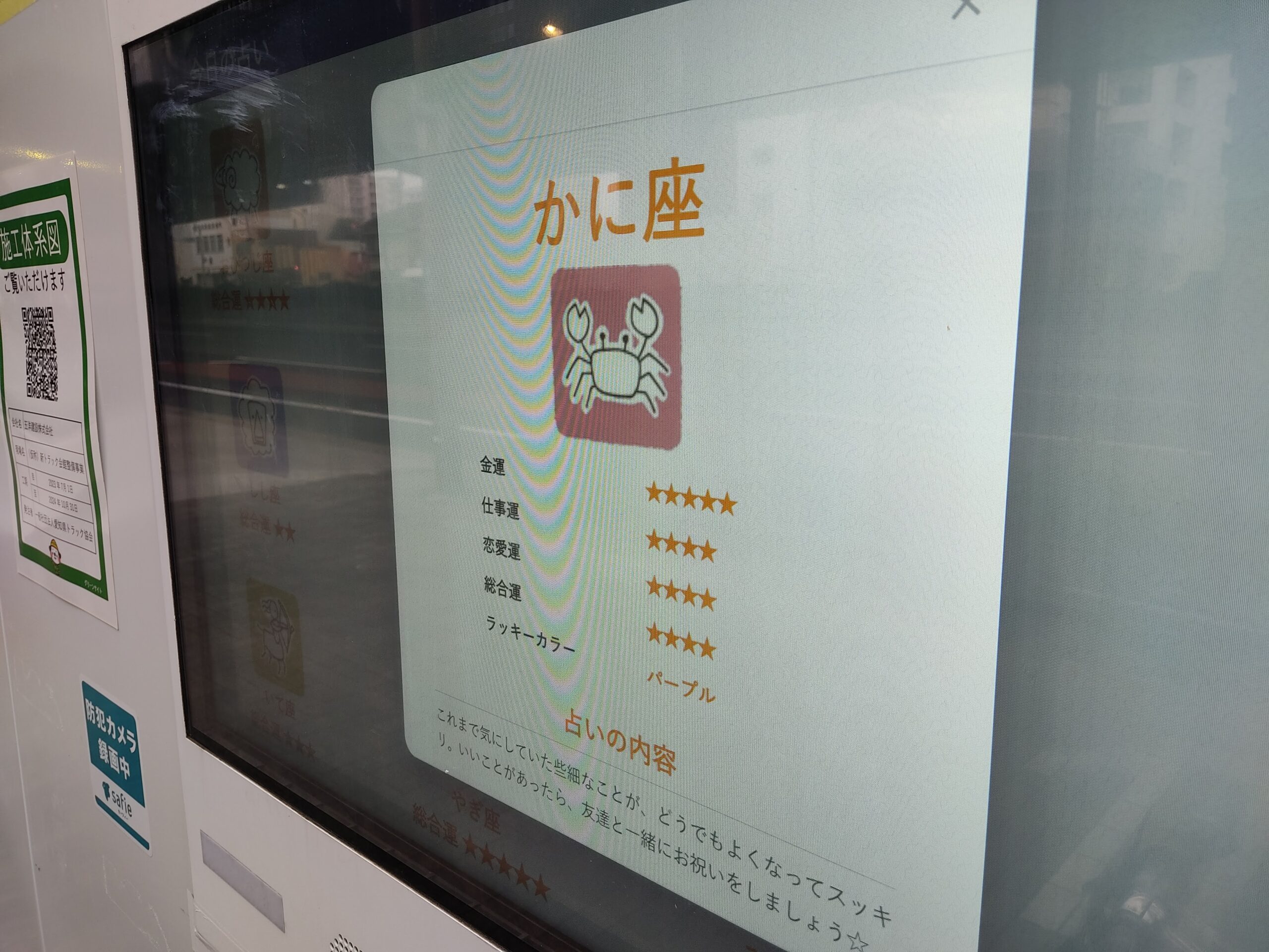 工事現場の前にあるモニターを気にしたことなかったですけど、今どきは占いができるものがあるとは知りませんでした。