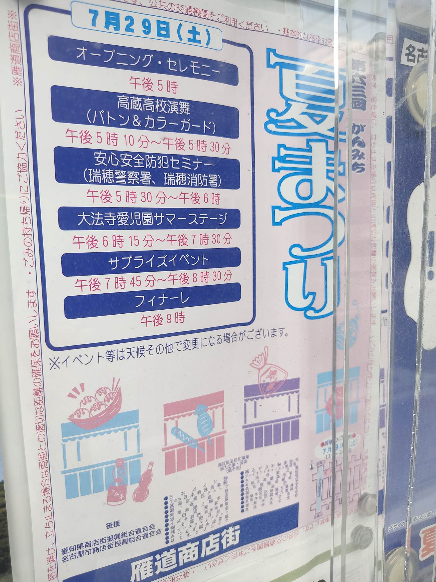 2023年7月29日(土)、瑞穂区・雁道商店街で『第63回がんみち夏まつり』が開催されます!!