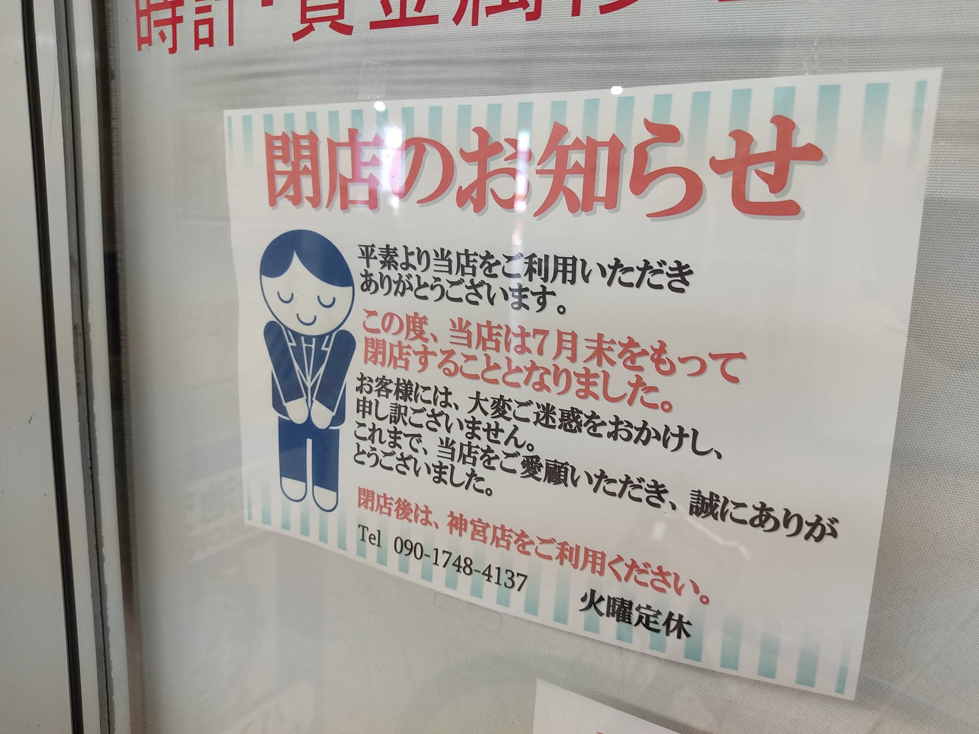 2022年7月末で名鉄堀田駅で営業していた、『ジェムウォッチ 堀田駅店』が閉店のようです。