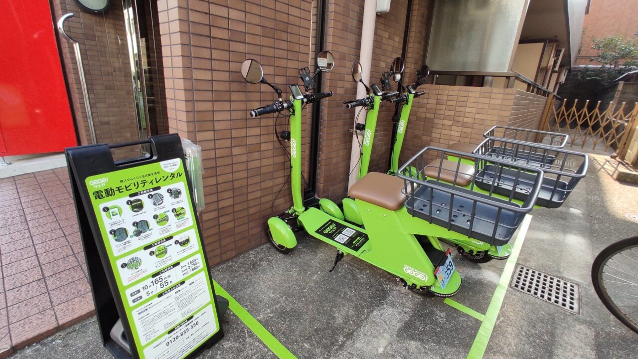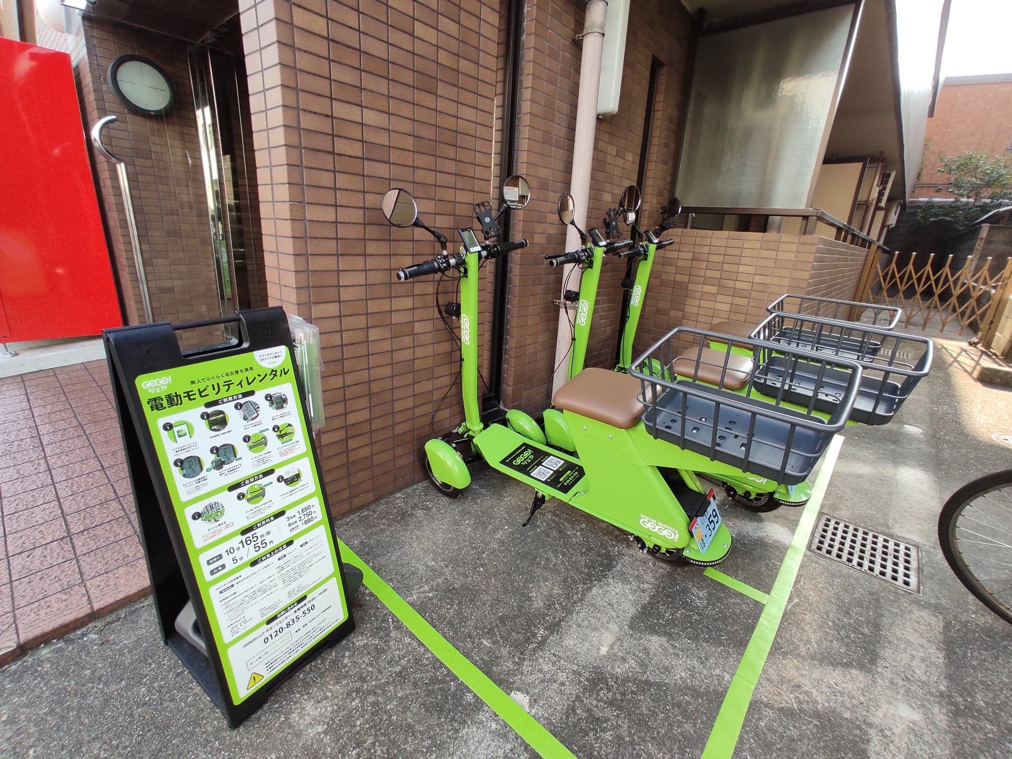 マンションの一角に『電動モビリティレンタル』の看板があります。