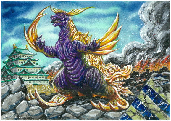 『シャチホコング』という名古屋城三の丸遺跡で発掘された金のしゃちほこが巨大化という設定のご当地怪獣が!!