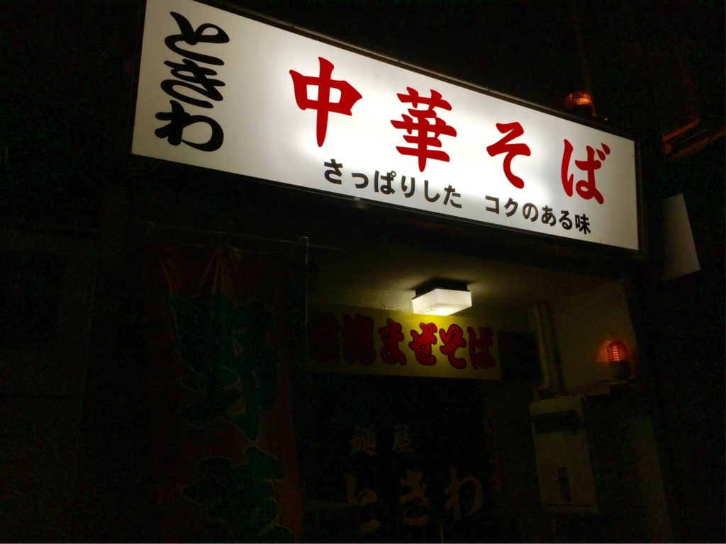 夜になると看板の『中華そば』と『台湾まぜそば』が光り輝いています♪