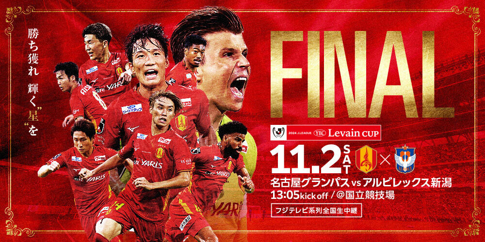 2024年11月2日(土)、東京の国立競技場でルヴァンカップ決勝戦『名古屋グランパス×アルビレックス新潟』が行われます!!