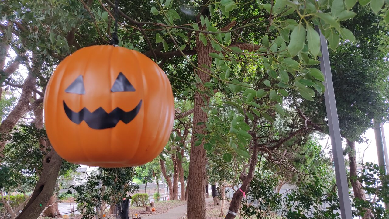 2024年の秋。パロマ瑞穂ラグビー場の横にある公園が、ハロウィーンの雰囲気でいっぱいになってました!!