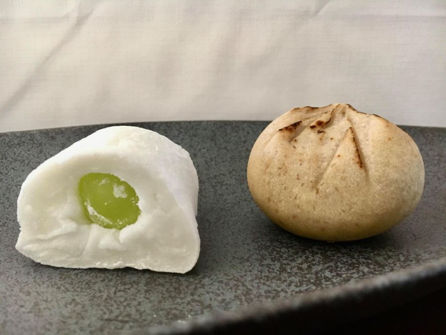 【マスカット餅】は長野県産「シャインマスカット」が2粒入っていて、