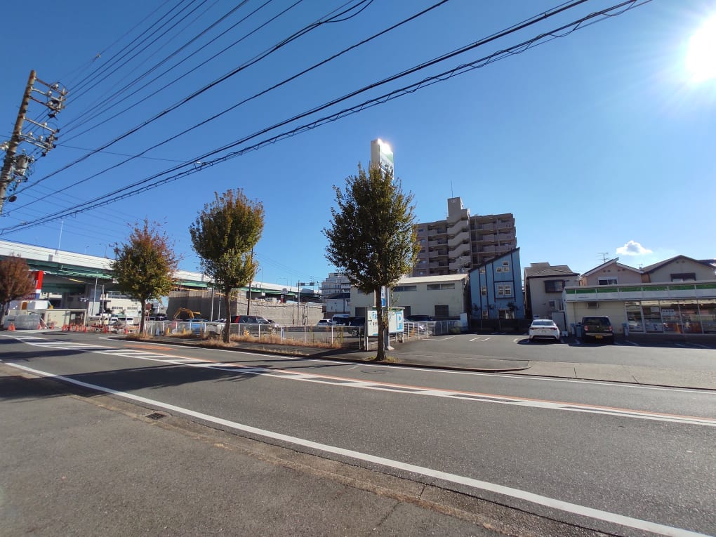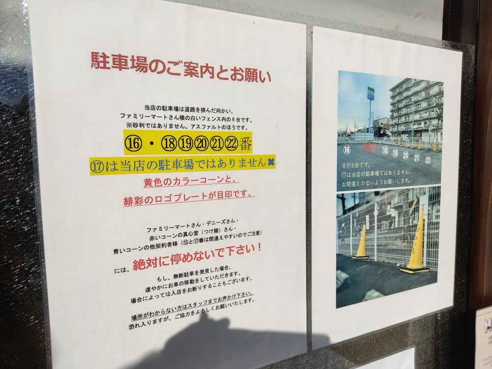 お店の向かいにあるファミリーマート。その隣に駐車場がありました。