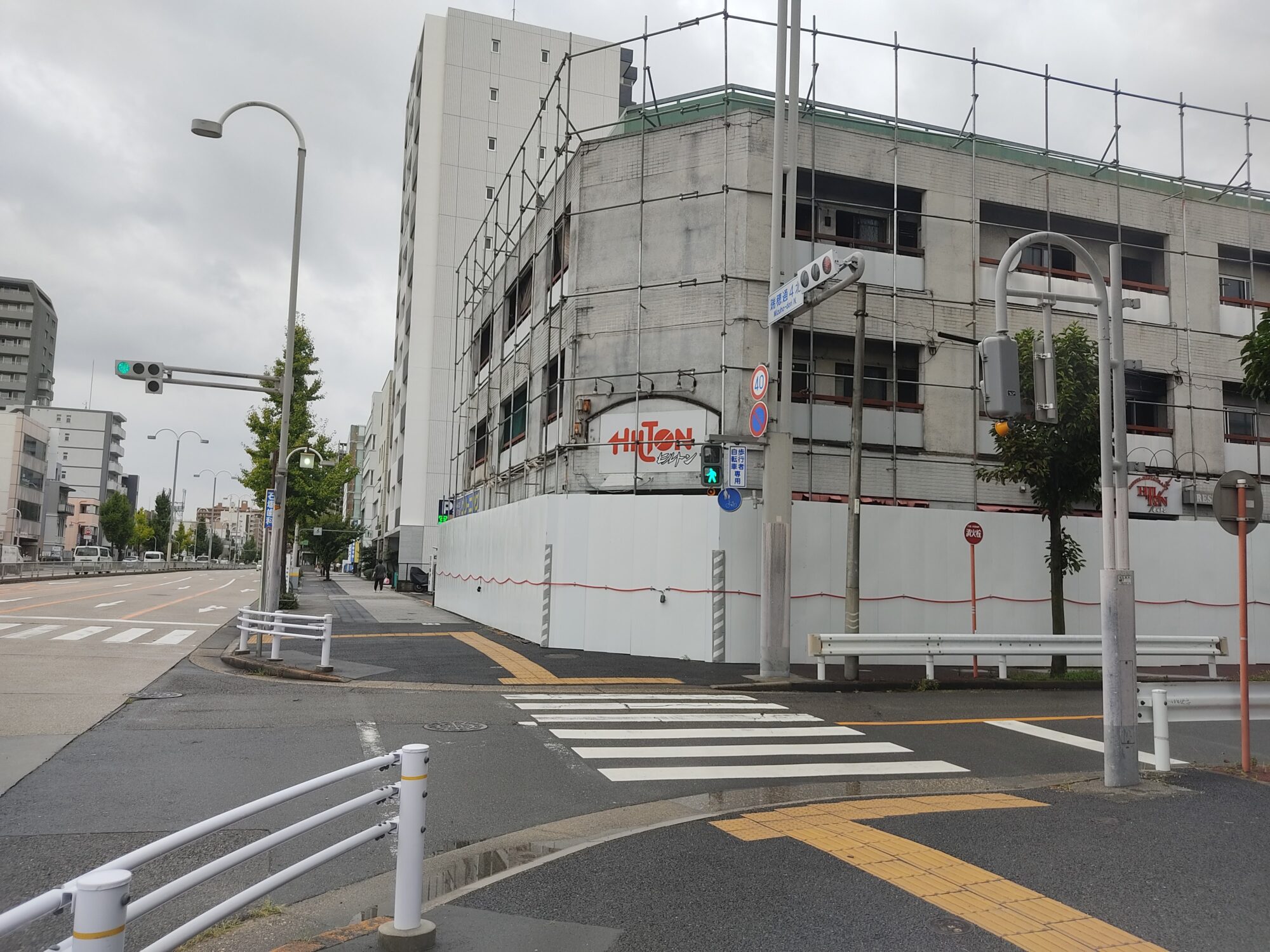 2025年9月、瑞穂区役所の南側、瑞穂通沿いにあったカフェ『ヒルトン』があったビルの解体工事の準備が進んでいました…