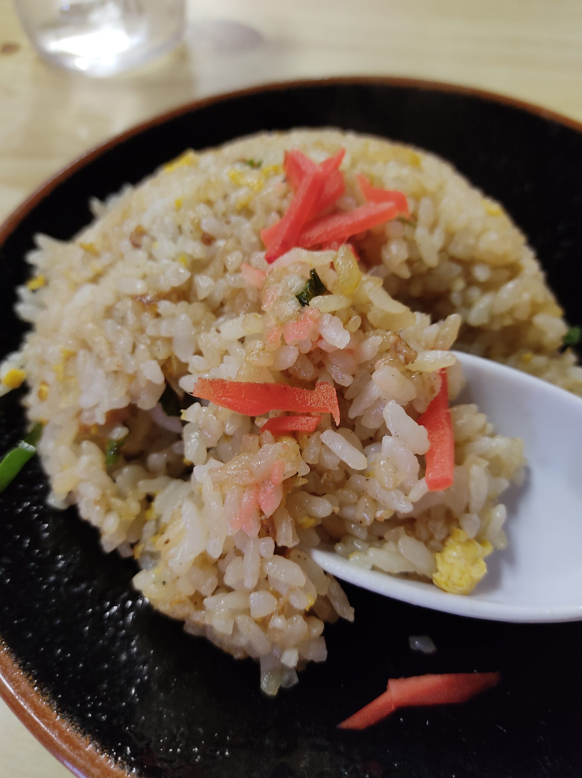 紅ショウガが乗ったチャーハン。個人的に大好きです。