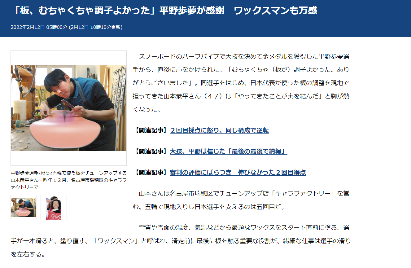 金メダル『平野歩夢選手』板の調整は瑞穂区・弥富通のお店が担当していたそうです!!【ニュース】