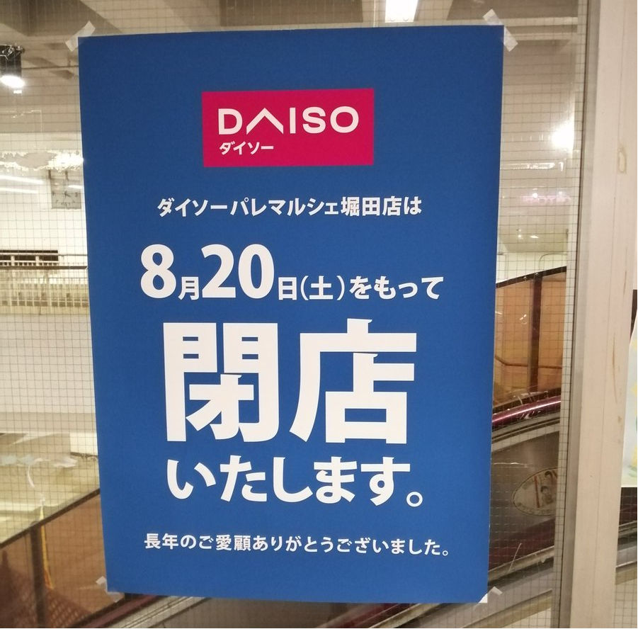 堀田駅『ダイソー パレマルシェ堀田店』8/20(土)で閉店。【瑞穂区閉店】