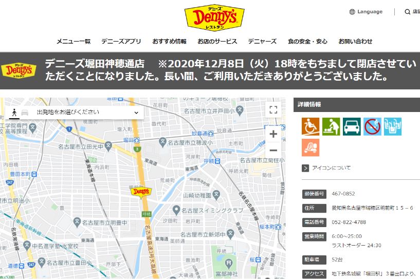 堀田にある『デニーズ堀田神穂通店』が閉店するようです。