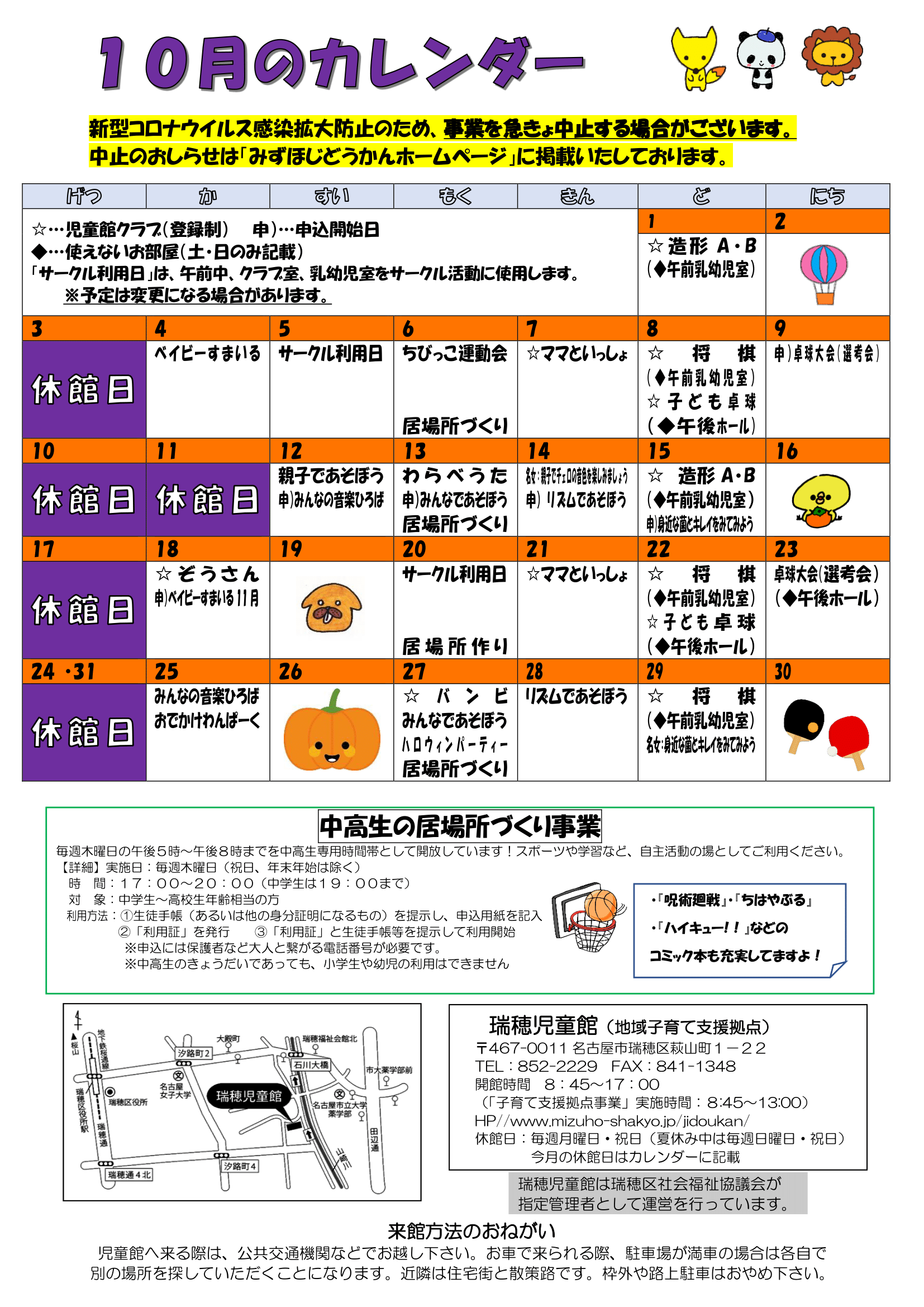 瑞穂児童館で2022年10月に開催されるイベント案内です。