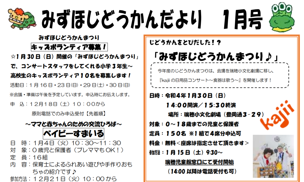 2022年1月30日(日)、瑞穂文化小劇場で2021年度の『みずほじどうかんまつり』が開催されます!!
