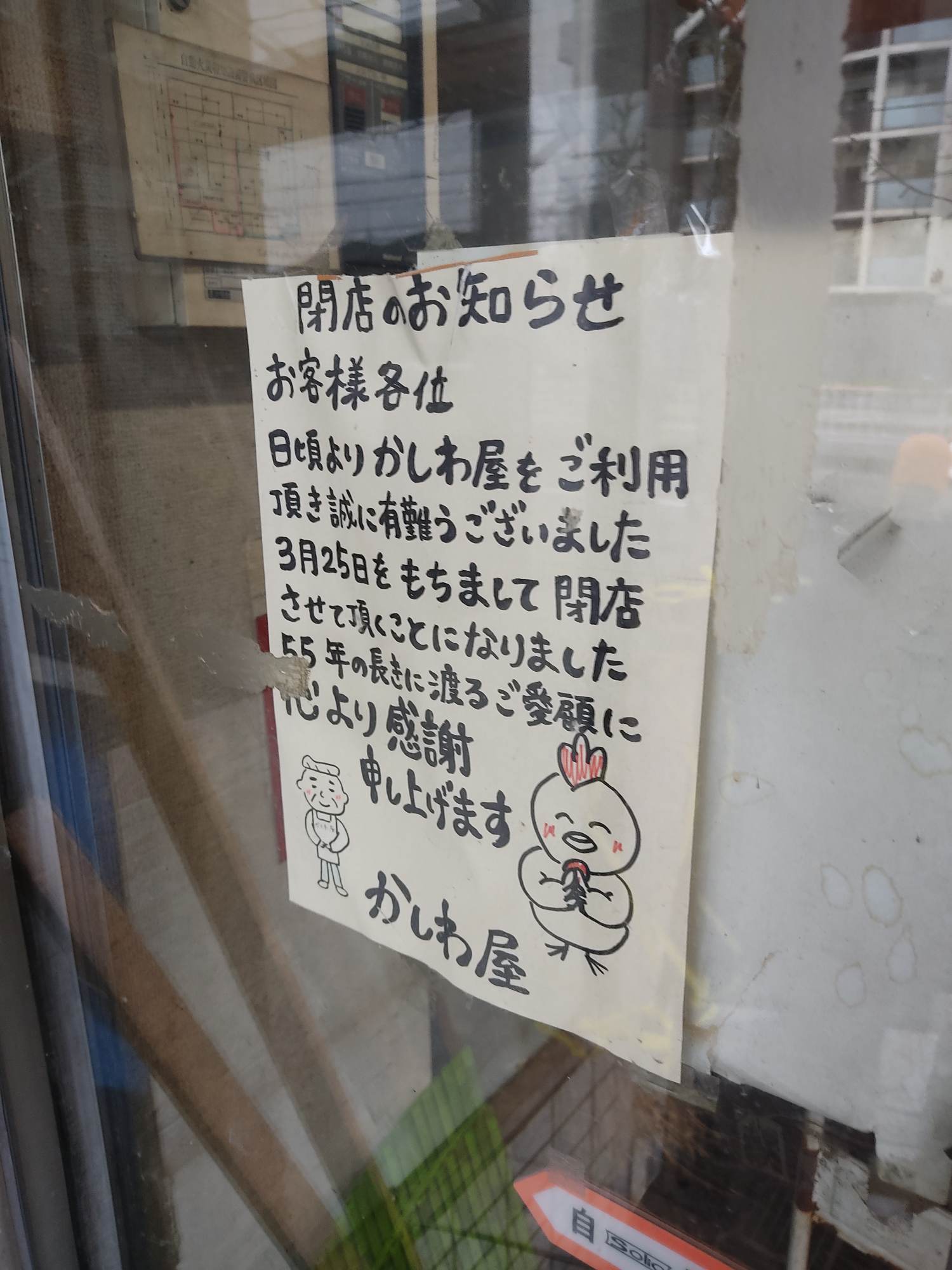 2023年3月25日(土)の営業を持って、瑞穂区・八勝通で営業していたお弁当屋さん『かしわや』が閉店です。