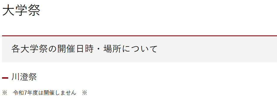 名市大のホームページに、川澄祭の開催中止の発表がありました。