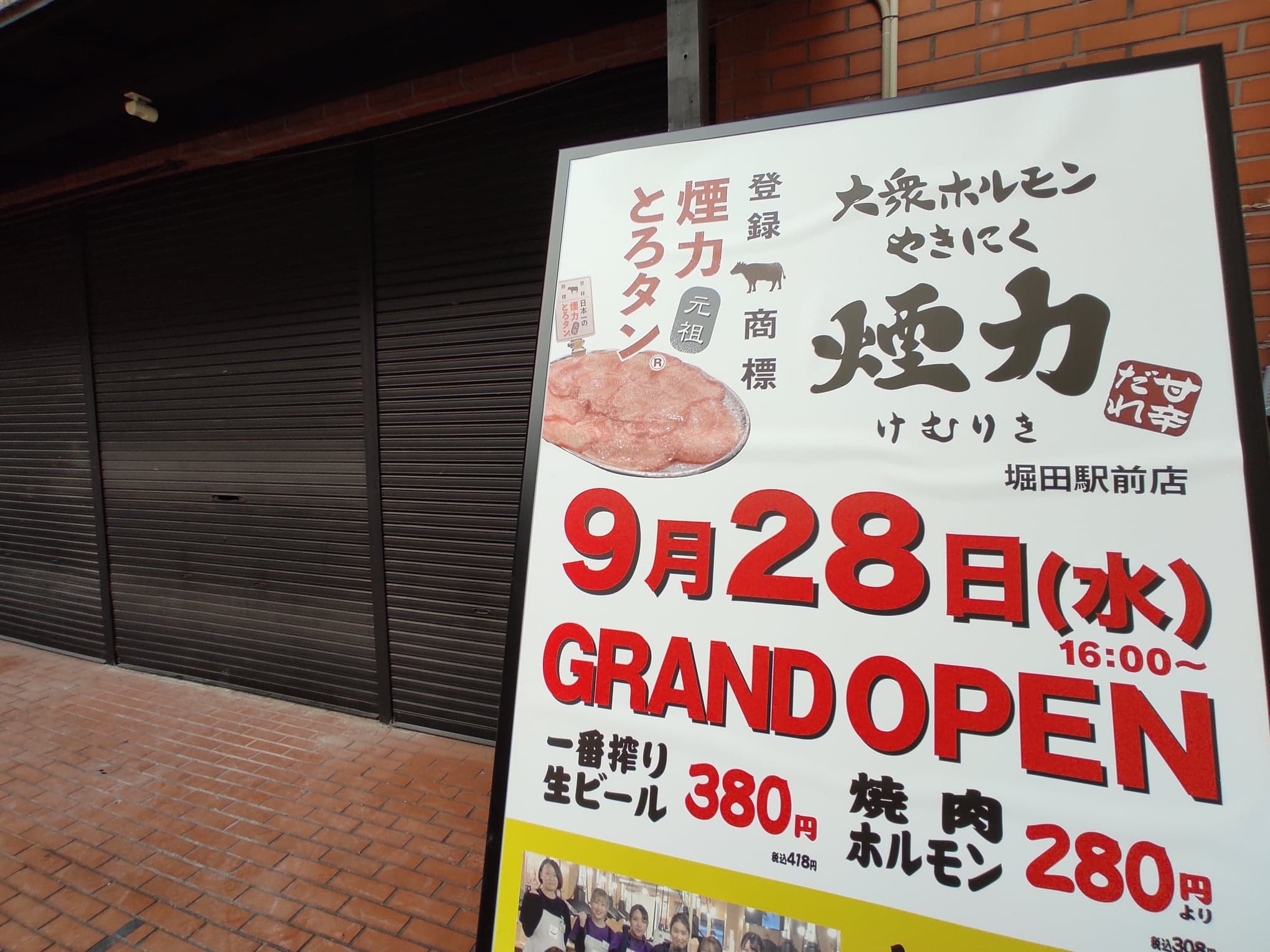 新しくオープンする『大衆ホルモン・やきにく煙力 堀田駅前店』の看板が出ていました!!