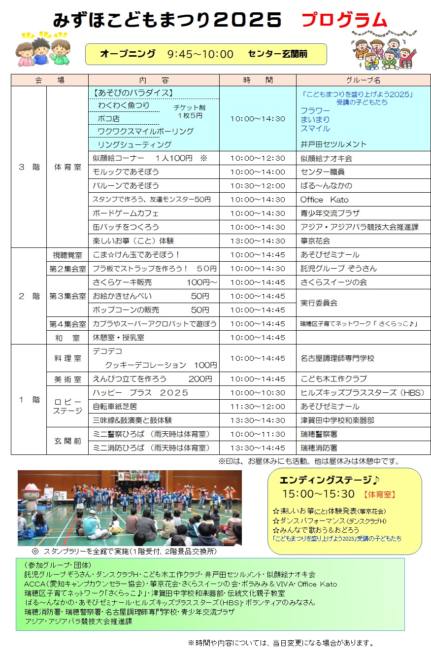 2025年3月2日(日)瑞穂区・惣作町にある瑞穂生涯学習センターで『みずほこどもまつり2025』が開催されます!!
