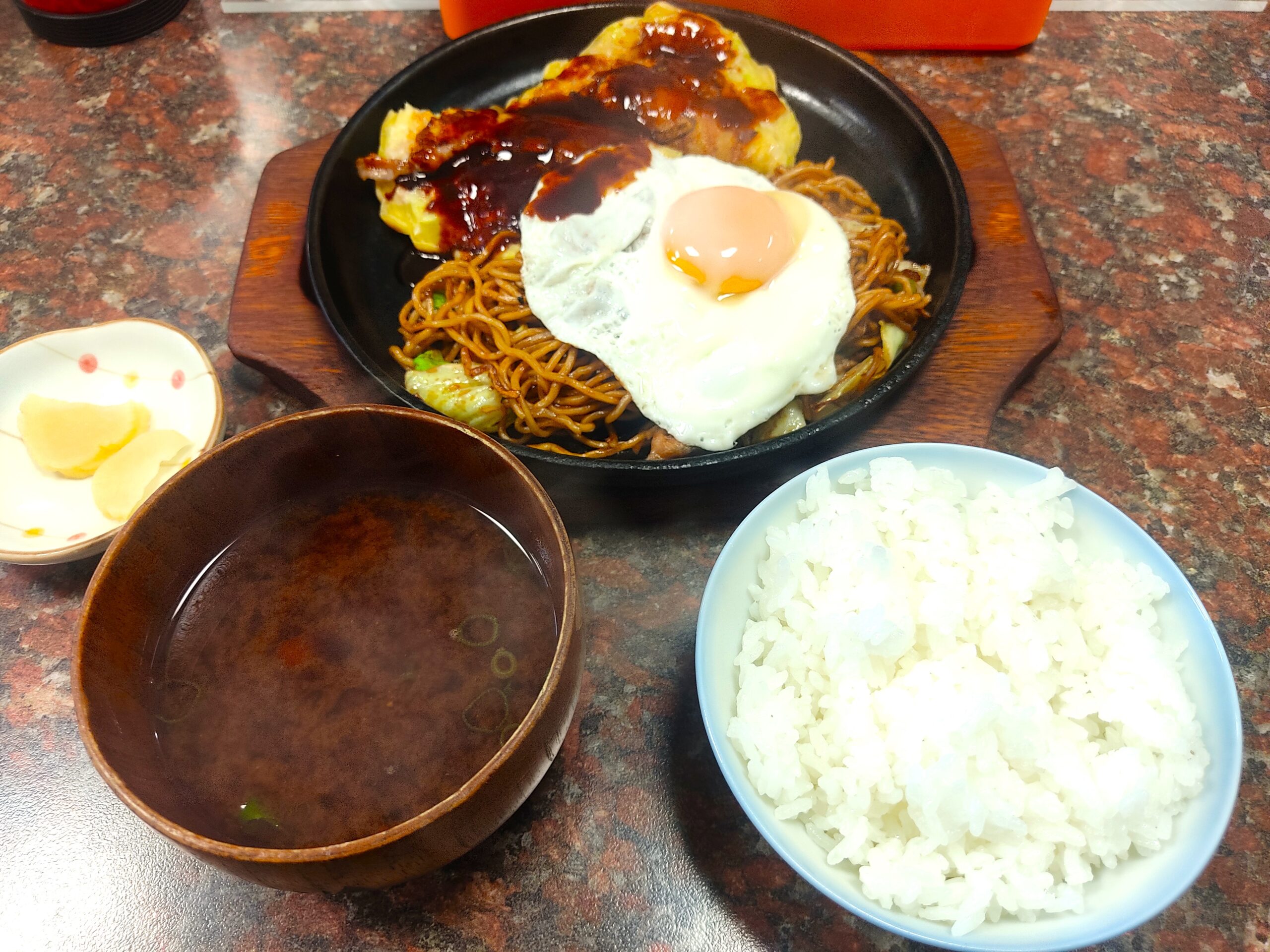 お好み焼き×焼きそば×ご飯×赤だし!