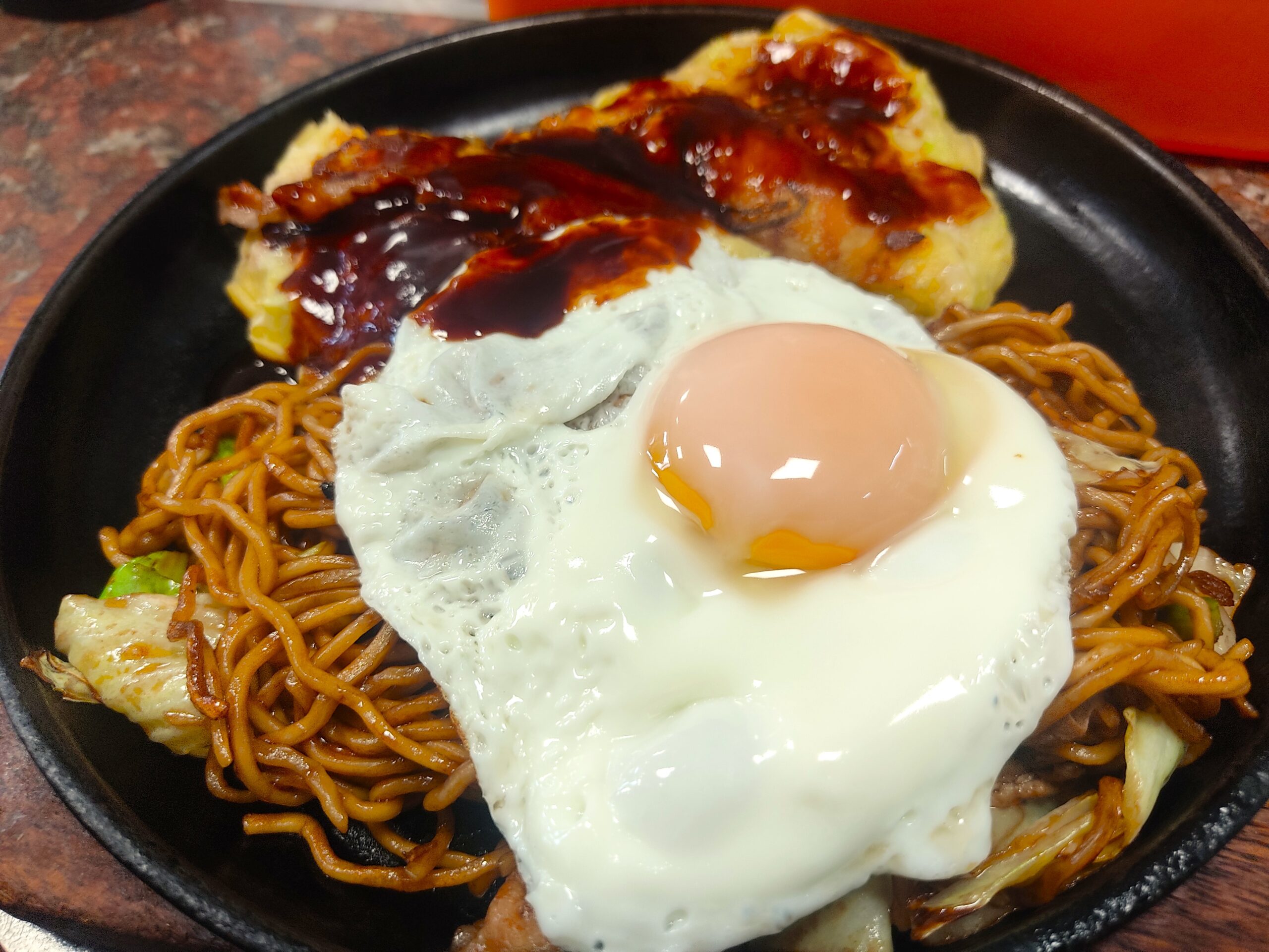 鉄板で焼き立ての『お好み焼き&焼きそば』は最高でした…