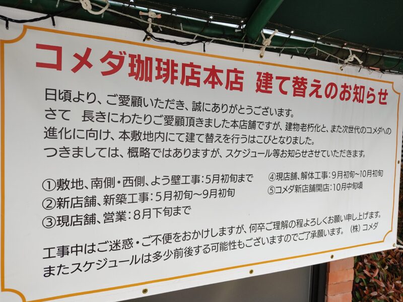 名古屋市瑞穂区にある『コメダ珈琲店 本店』の建物が老朽化のため解体、建て替えとなることが決定したようです。