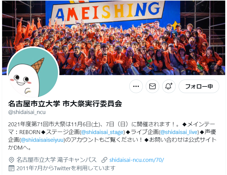 — 名古屋市立大学 市大祭実行委員会 (@shidaisai_ncu) October 30, 2021