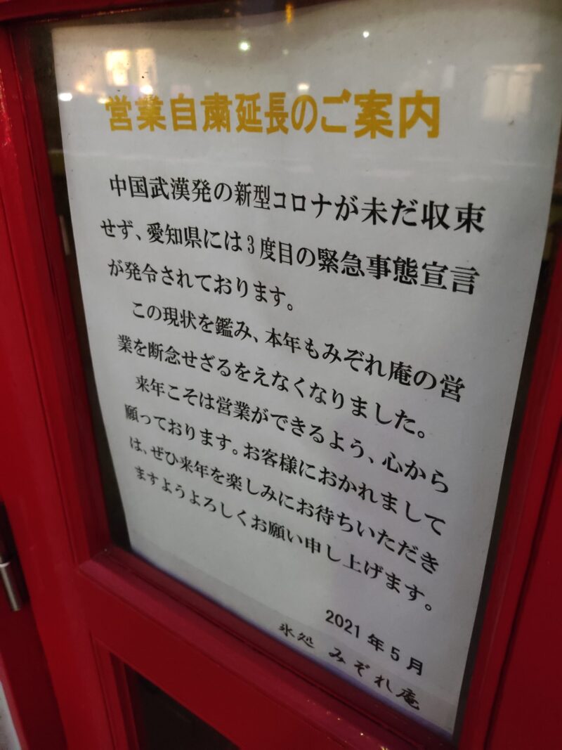 新瑞橋の『あらたまバッティングセンター』横で夏期限定で営業していた、かき氷屋さん『氷処 みぞれ庵』は2021年の営業も断念されたようです…