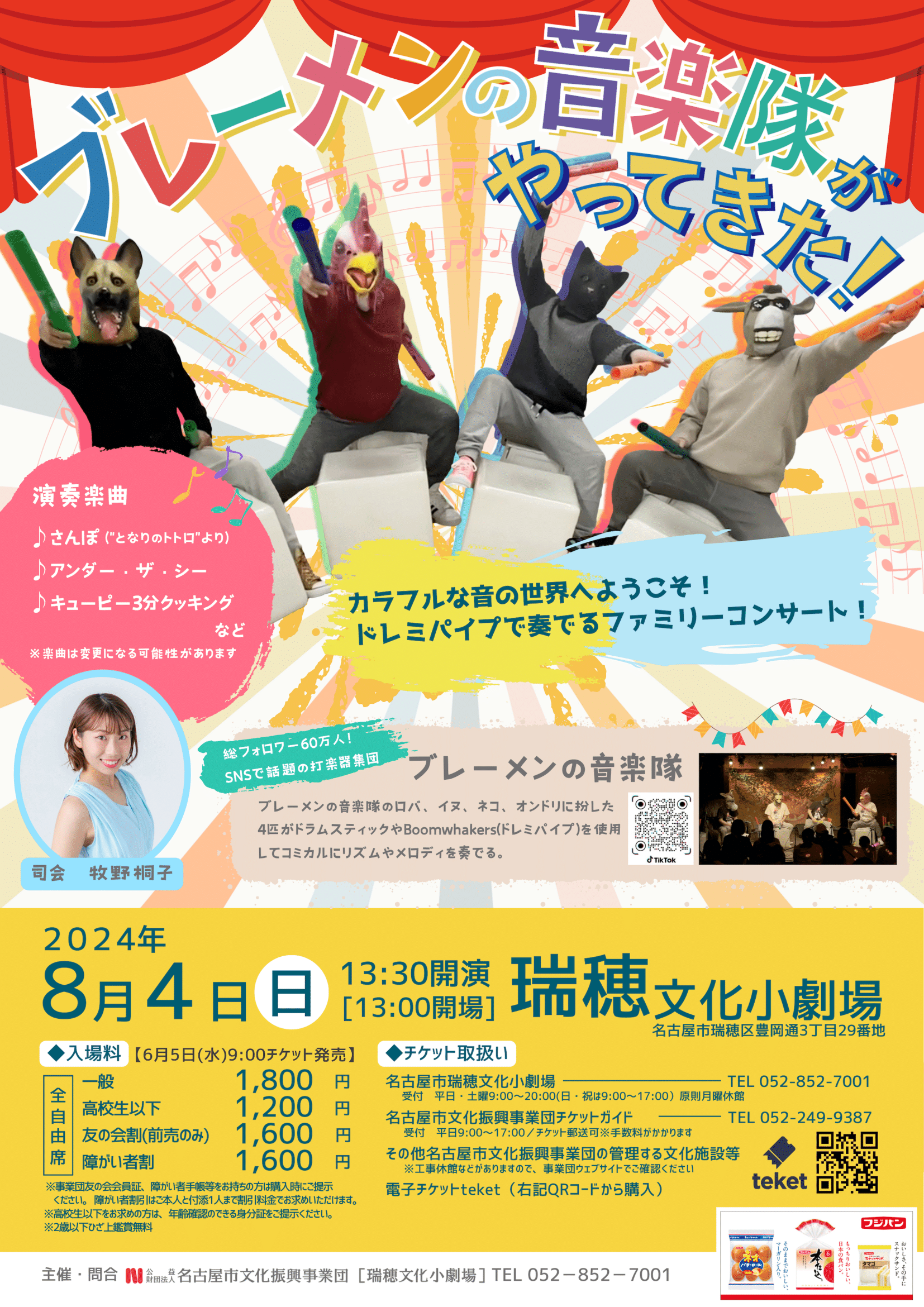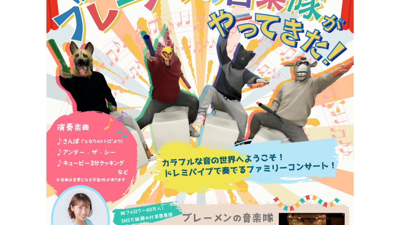2024年8月4日(日)、瑞穂文化小劇場で『ブレーメンの音楽隊がやってきた!』が開催されます!