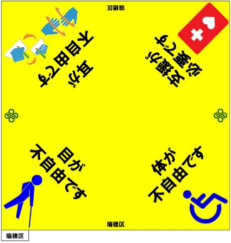 昨年度、瑞穂区で『災害時要配慮者支援用バンダナ』が製作されたそうです!!名古屋市の16区の中でも最初に製作され、瑞穂区内の指定避難所に配備されているとのこと。