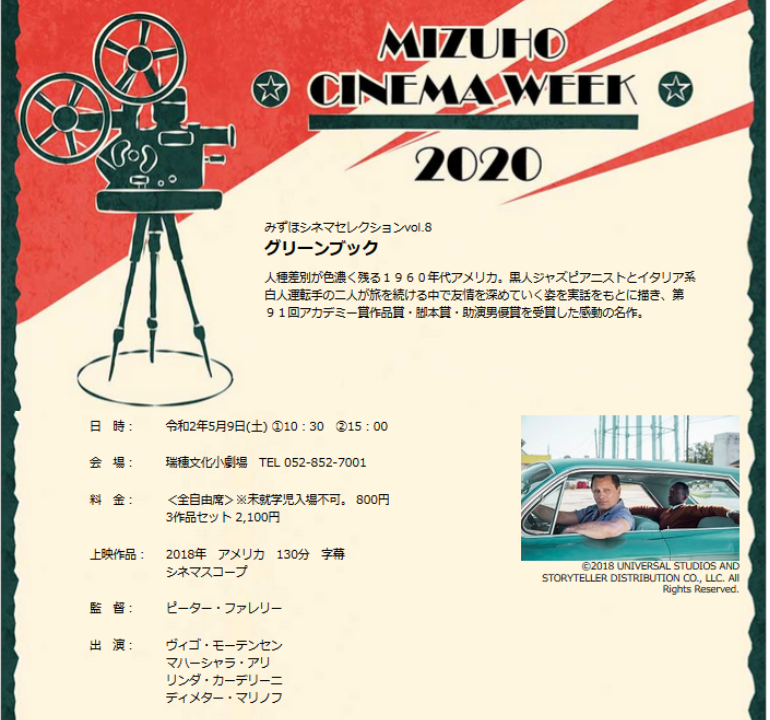 【イベント】『MIZUHO CINEMA WEEK 2020』が開催決定♪瑞穂文化小劇場で映画を楽しもう! 2020年5月のゴールデンウィークに瑞穂文化小劇場で 『MIZUHO CINEMA WEEK 2020』の開催が決定しまし...