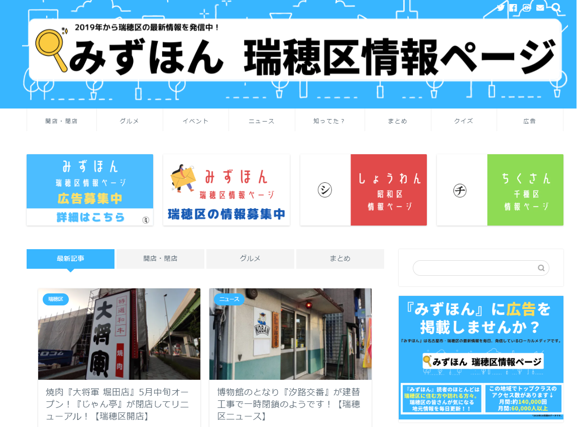『みずほん 瑞穂区情報ページ』は毎日、瑞穂区の最新情報や超ローカルな小ネタを更新しています。そのため、アクセスのほとんどは瑞穂区やその周辺の方々です。