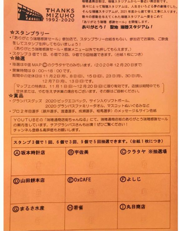 これまでずっとグランパスを応援してきた『瑞穂通商店街』が、2020年11月1日(日)から「ありがとう瑞穂 スタンプラリー」を開催しています!!