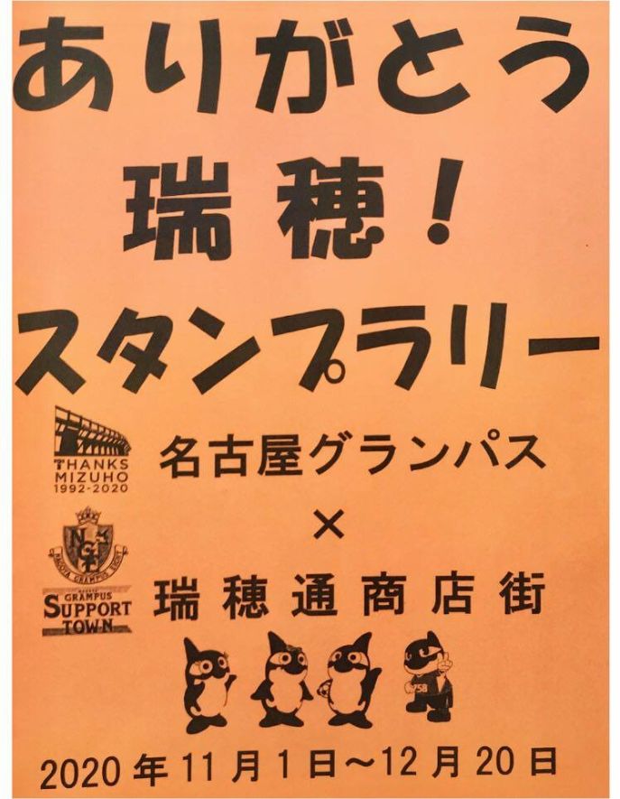 【瑞穂通商店街×名古屋グランパス「ありがとう、瑞穂。」スタンプラリー開催のお知らせ(グランパス公式サイト)】